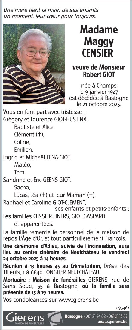 Fallecida en Bastogne (6600, Bélgica) el martes, 21 de octubre de 2025 a la edad de 78 años