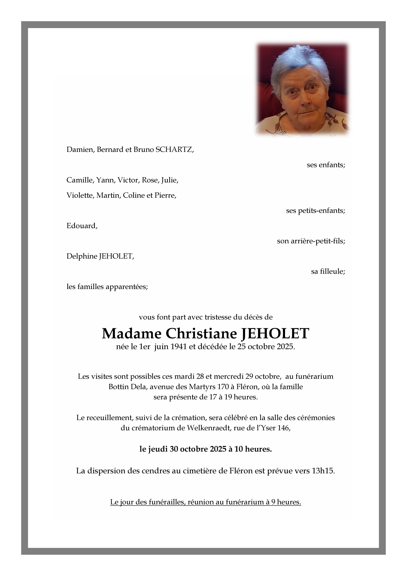 Fallecida en Fléron (4620, Bélgica) el sábado, 25 de octubre de 2025 a la edad de 84 años