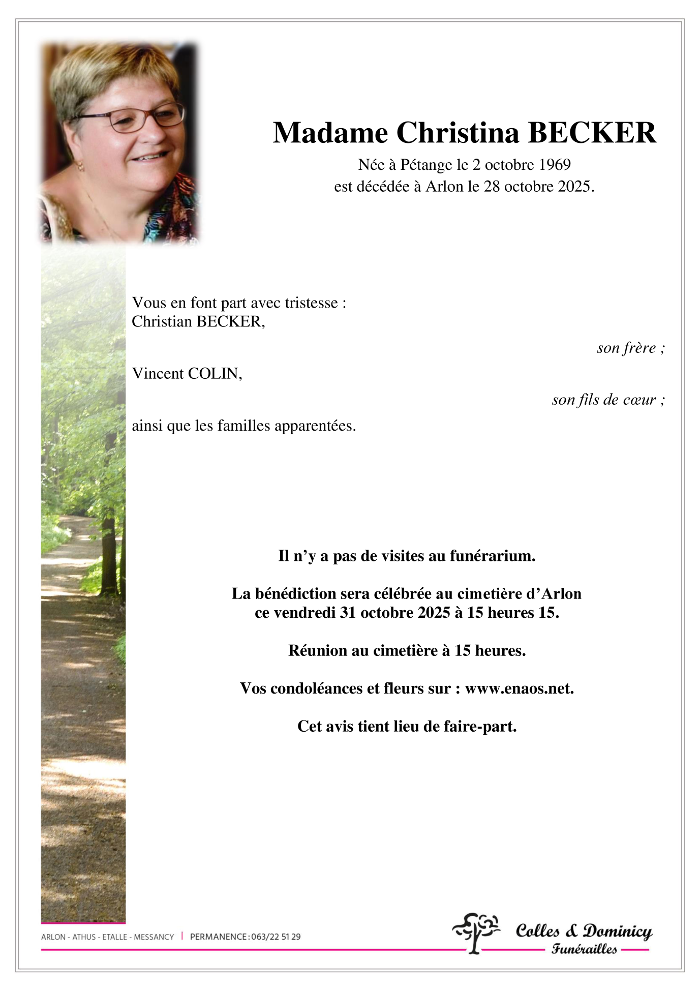 Fallecida en Arlon (6700, Bélgica) el martes, 28 de octubre de 2025 a la edad de 56 años