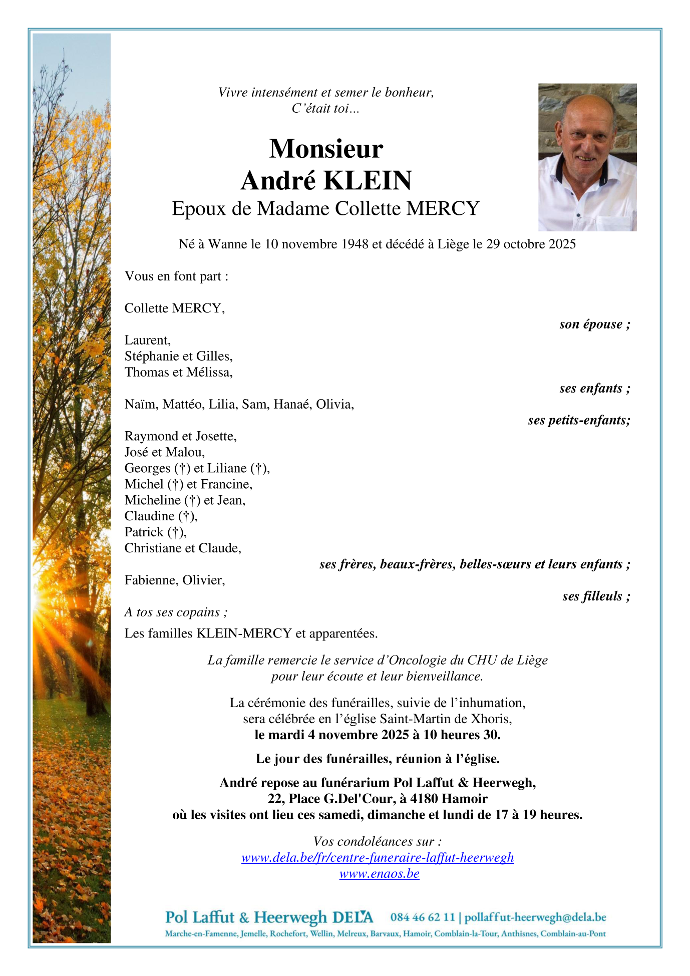 Fallecido en Liège (4000, Bélgica) el miércoles, 29 de octubre de 2025 a la edad de 76 años