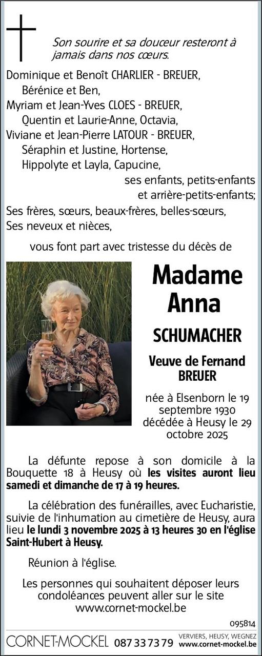 Fallecida en Heusy (4802, Bélgica) el miércoles, 29 de octubre de 2025 a la edad de 95 años