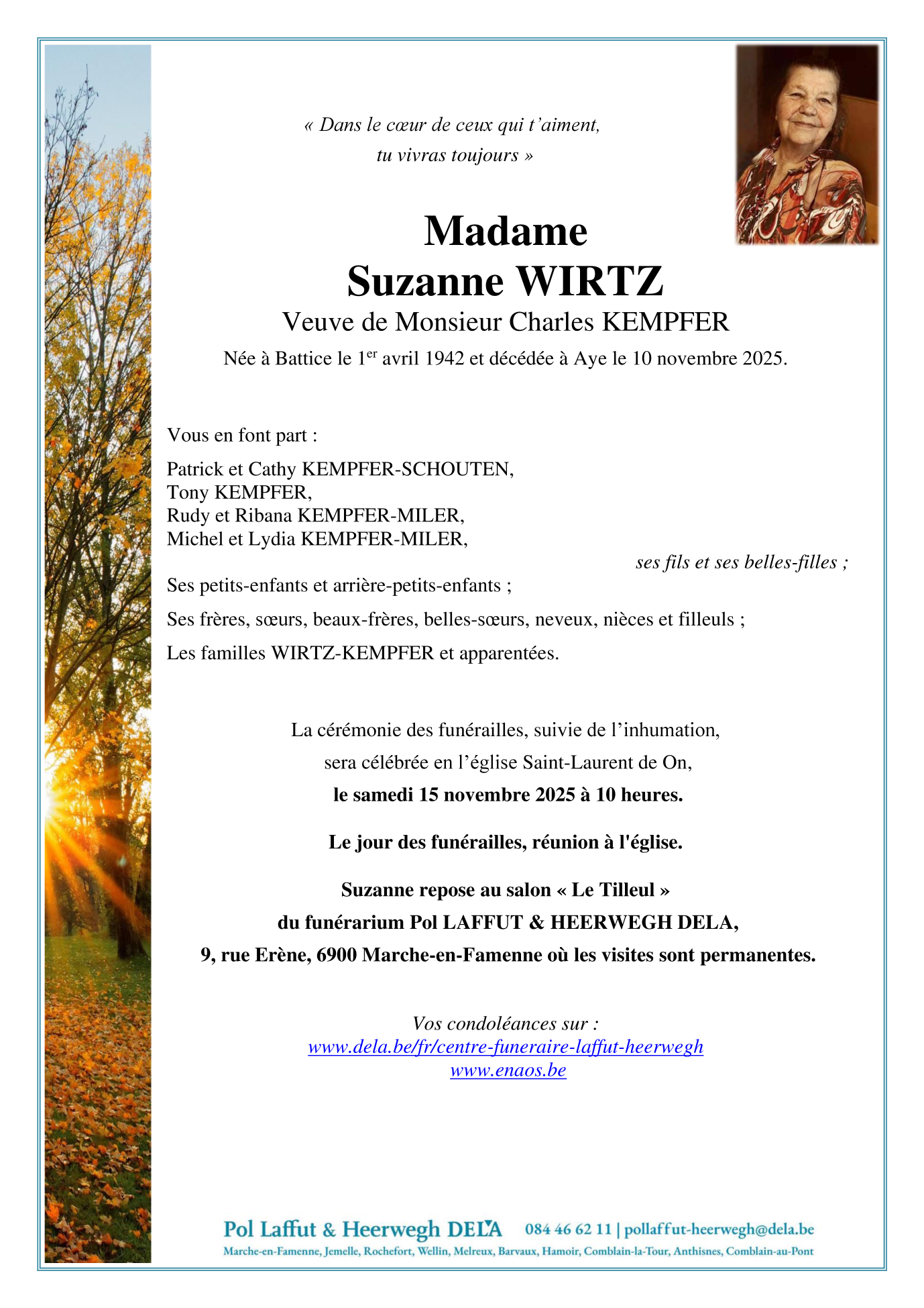 Fallecida en Aye (6900, Bélgica) el lunes, 10 de noviembre de 2025 a la edad de 83 años