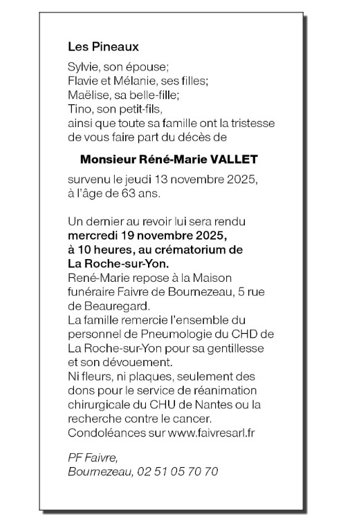 Fallecido en La Roche-sur-Yon (85000, Francia) el jueves, 13 de noviembre de 2025 a la edad de 63 años