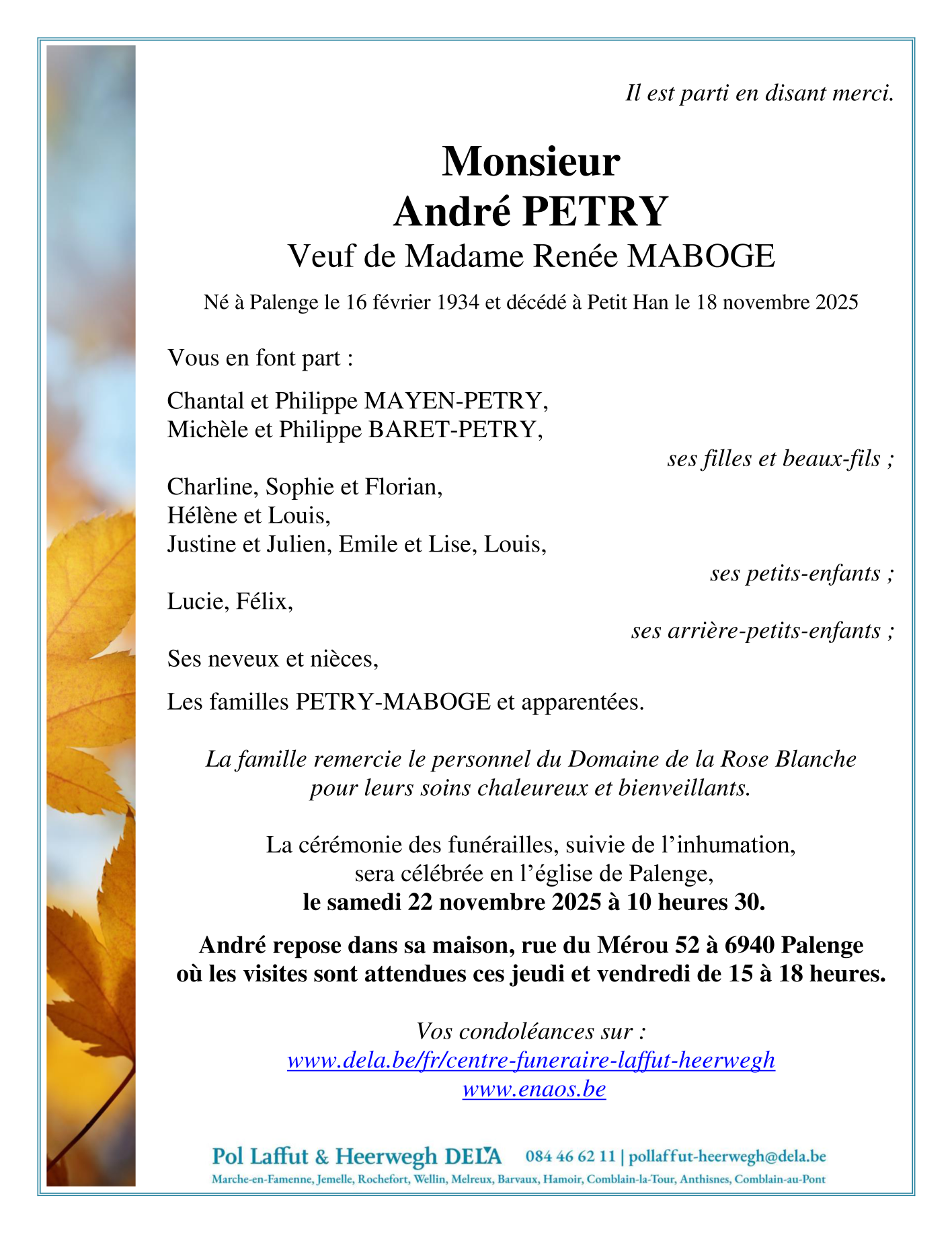 Fallecido en Petit-Han (6940, Bélgica) el martes, 18 de noviembre de 2025 a la edad de 91 años