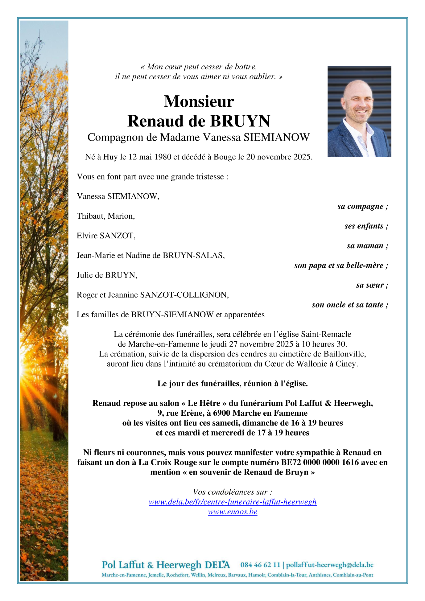 Fallecido en Bouge (5004, Bélgica) el jueves, 20 de noviembre de 2025 a la edad de 45 años