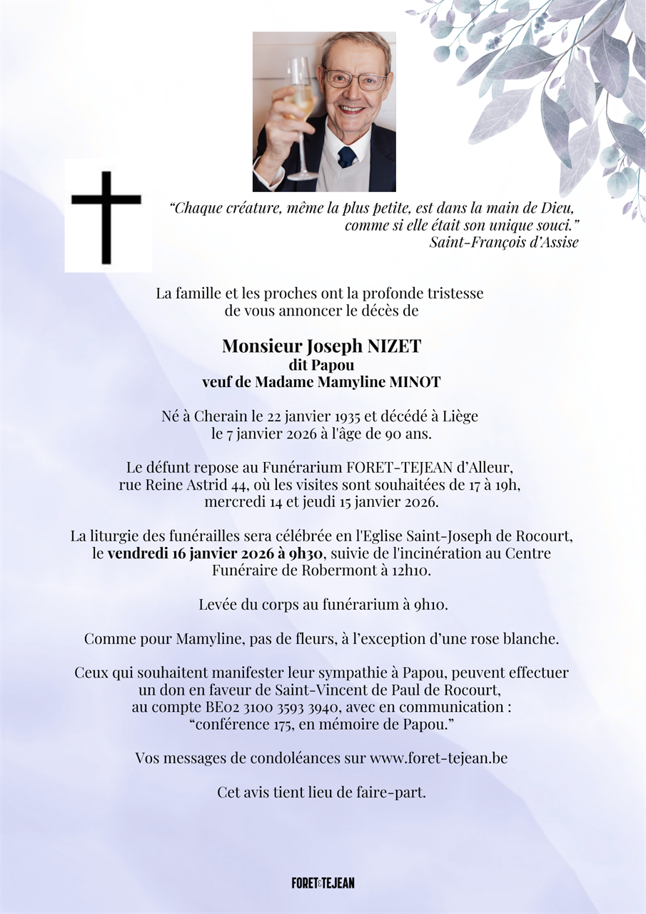 Fallecido en Liège (4000, Bélgica) el miércoles, 7 de enero de 2026 a la edad de 90 años
