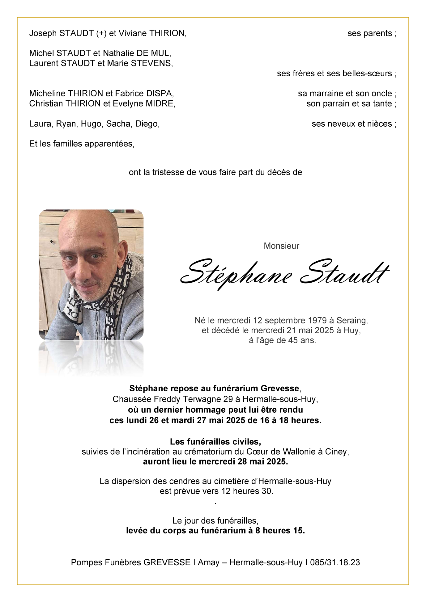 Died in Huy (4500, Belgium) on 21 May 2025 at the age of 45 years