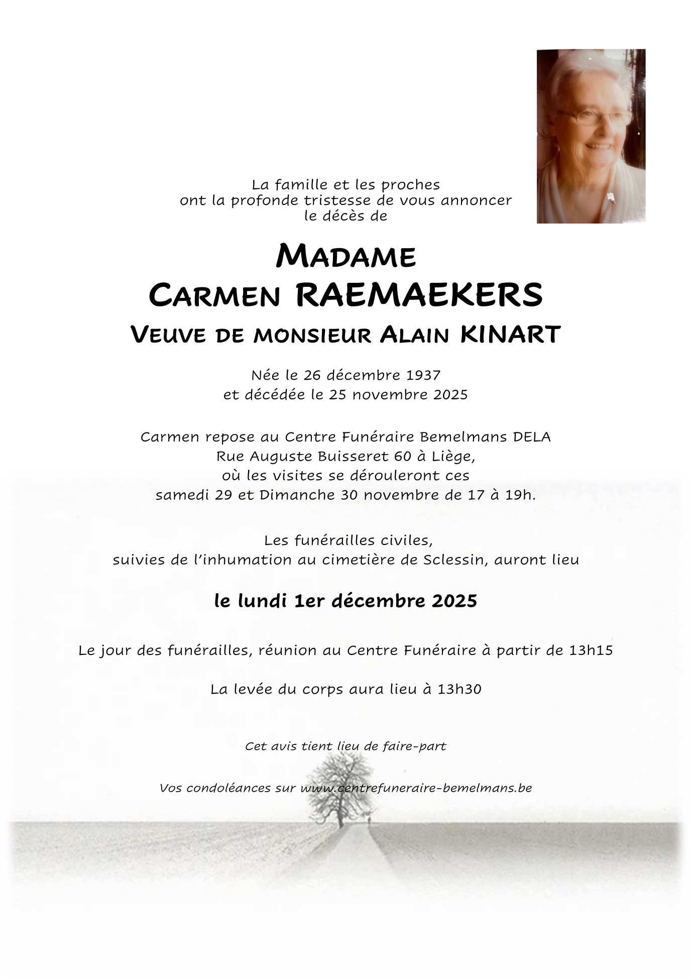Overleden te Liège (4000, België) op dinsdag 25 november 2025 op 87-jarige leeftijd