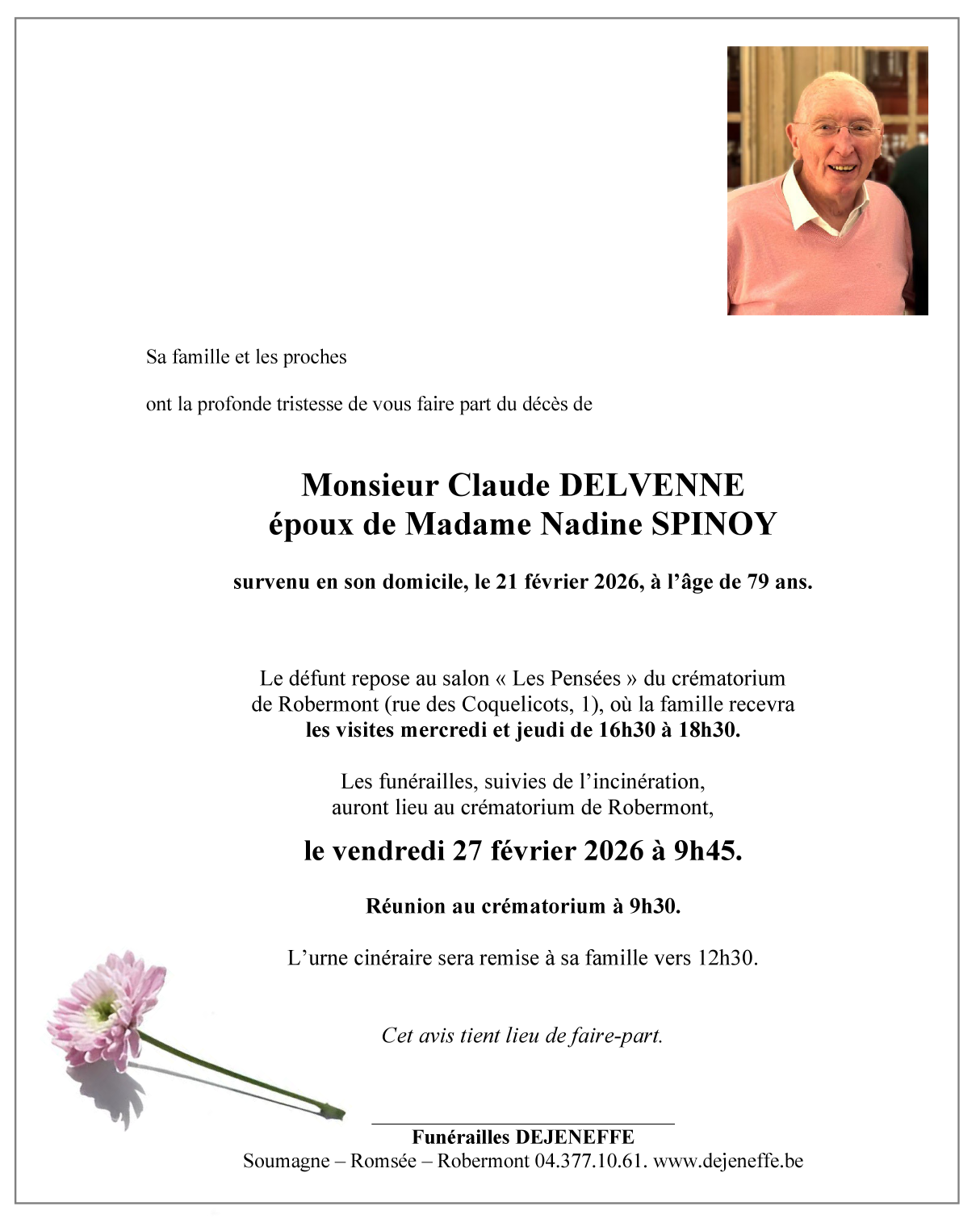 Overleden te Boncelles (4100, België) op zaterdag 21 februari 2026 op 79-jarige leeftijd