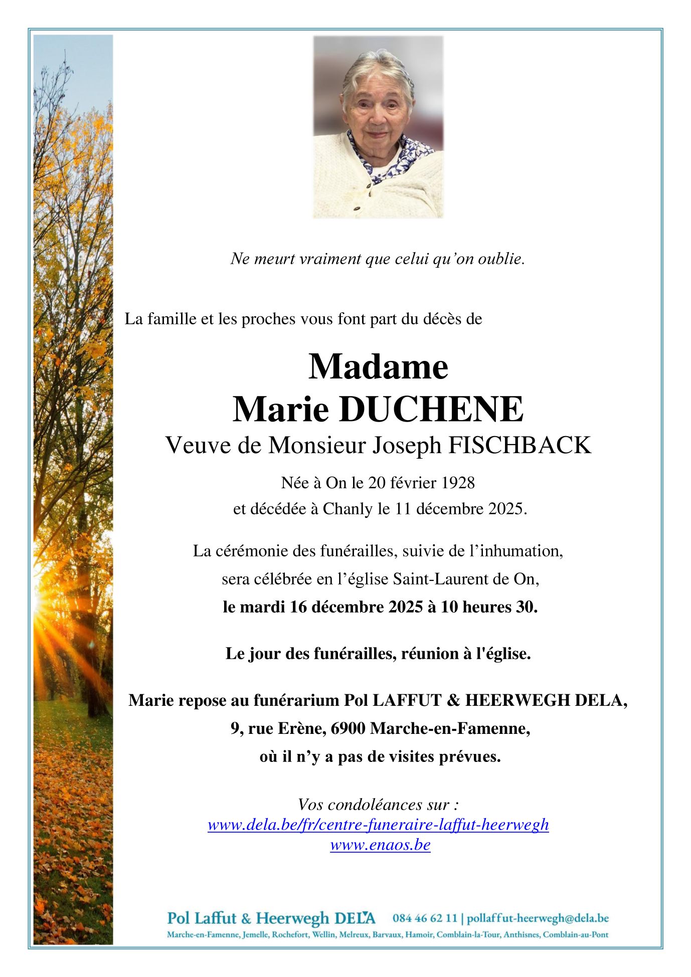 Fallecida en Chanly (6921, Bélgica) el jueves, 11 de diciembre de 2025 a la edad de 97 años