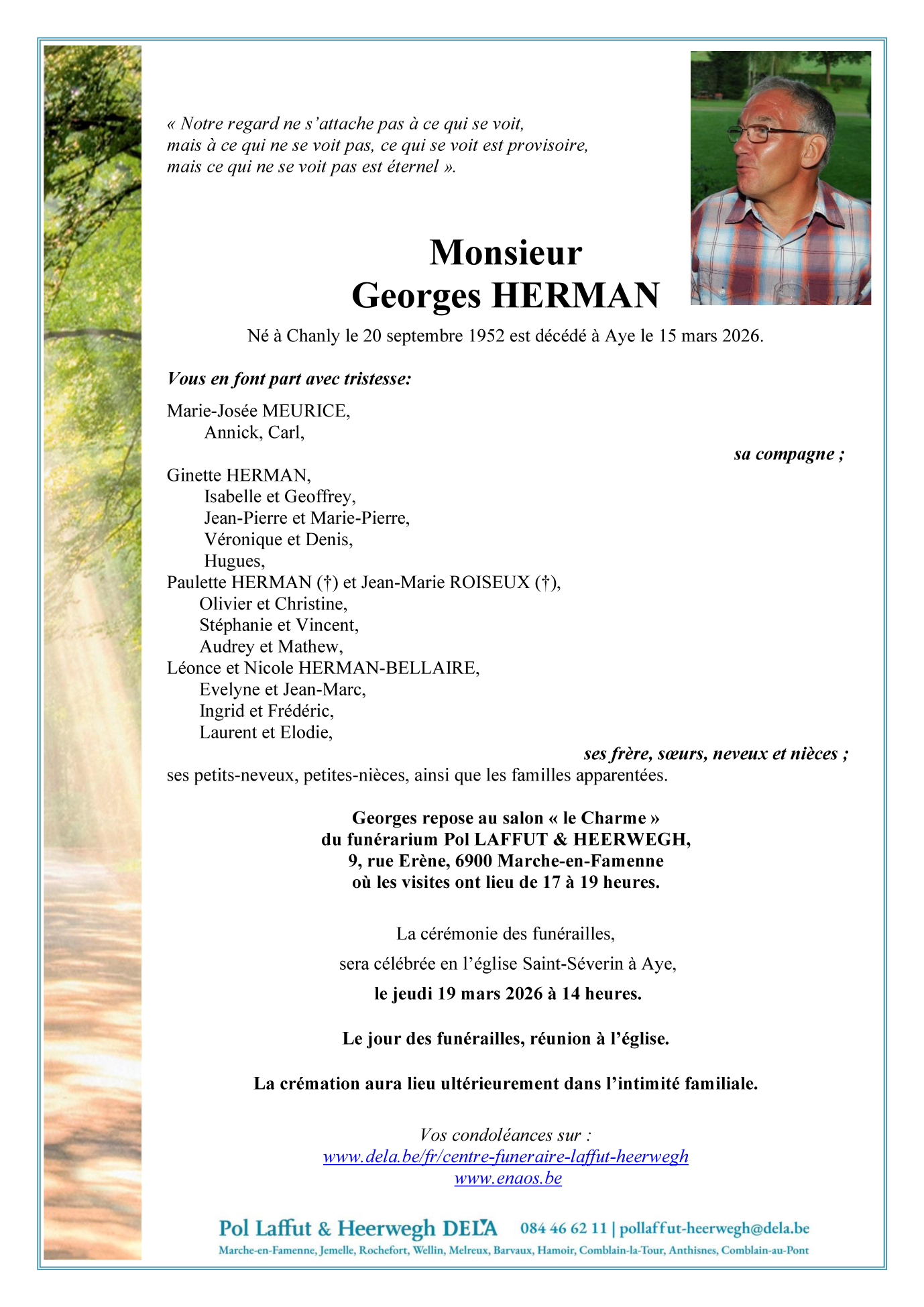 Fallecido en Aye (6900, Bélgica) el domingo, 15 de marzo de 2026 a la edad de 73 años