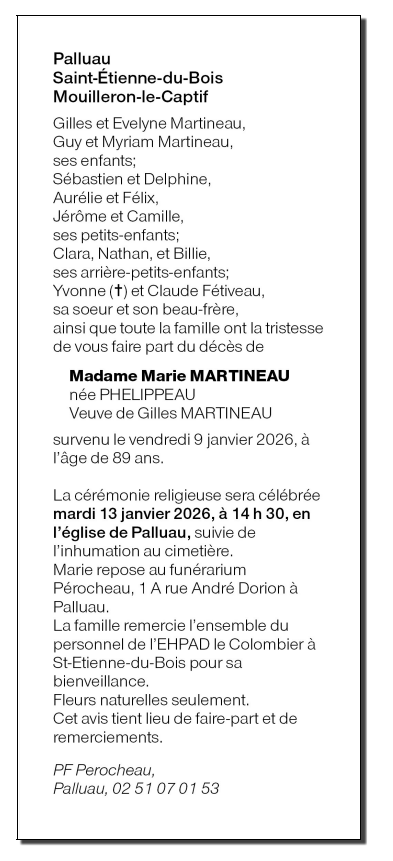 Died in Saint-Étienne-du-Bois (85670, France) on 09 January 2026 at the age of 89 years