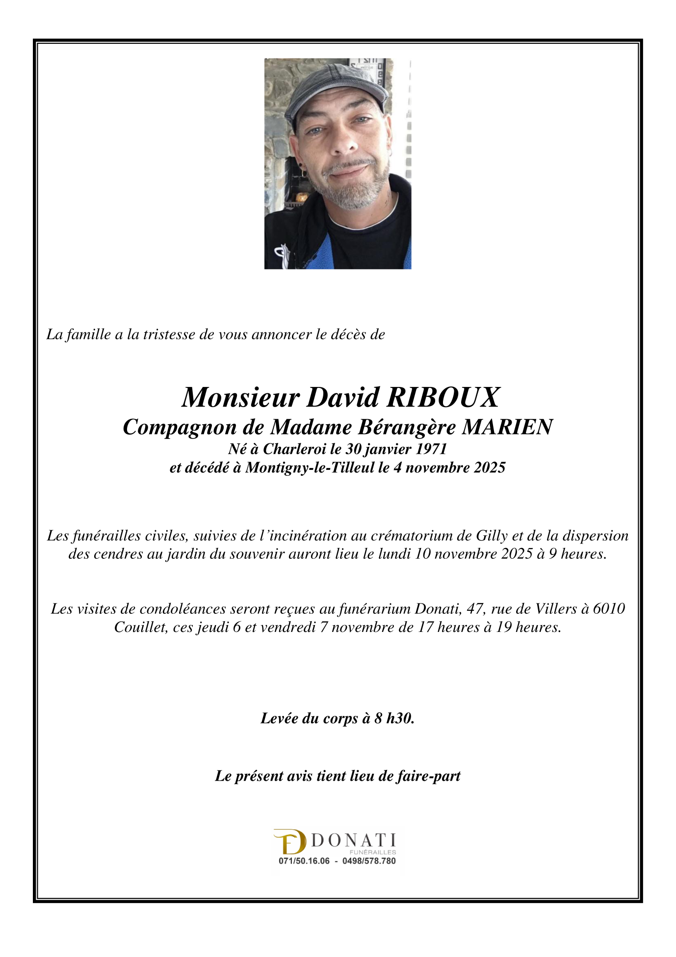 Overleden te Montigny-le-Tilleul (6110, België) op dinsdag 4 november 2025 op 54-jarige leeftijd