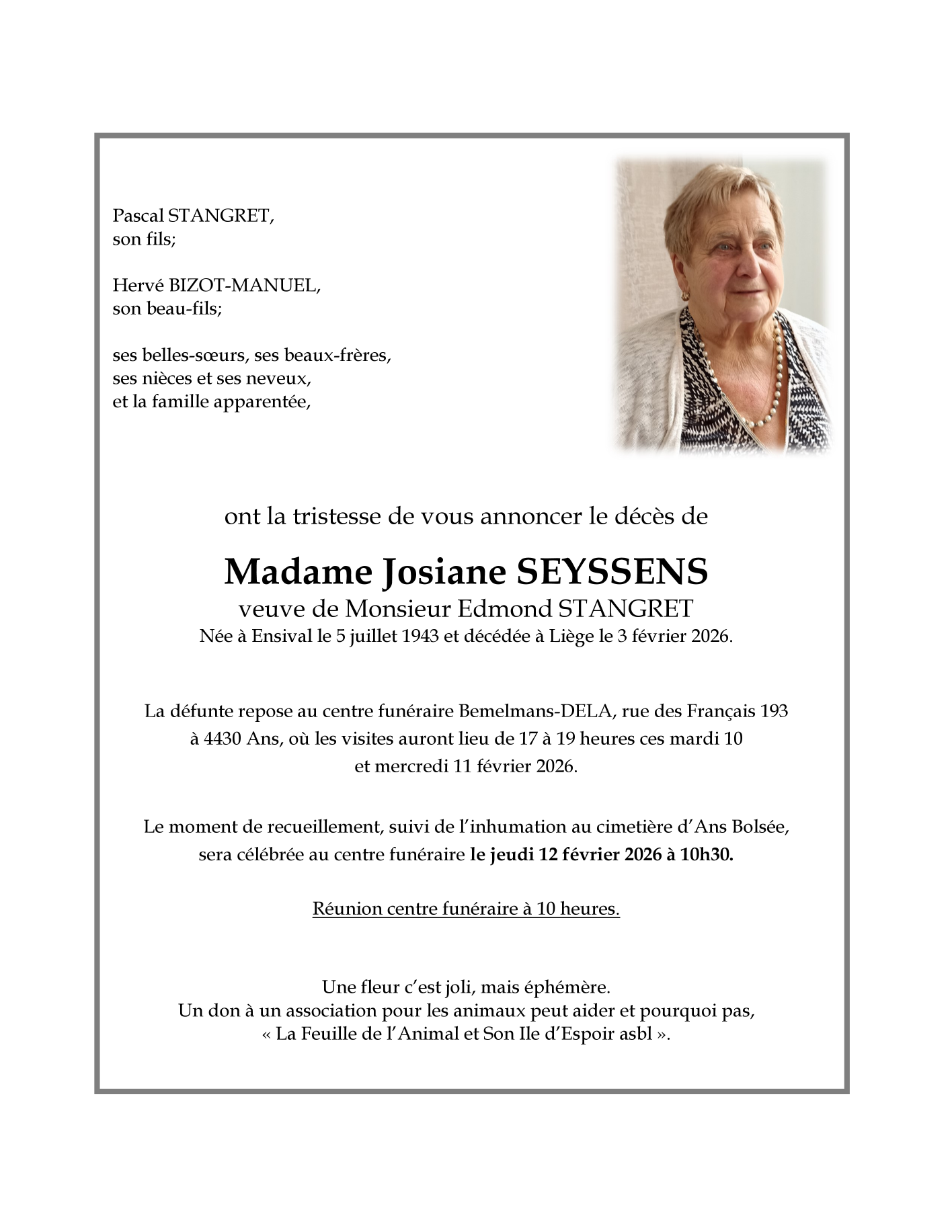 Fallecida en Liège (4000, Bélgica) el martes, 3 de febrero de 2026 a la edad de 82 años