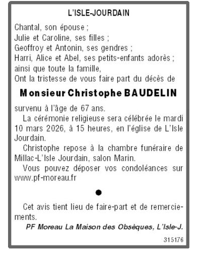 Overleden te Poitiers (86000, Frankrijk) op dinsdag 3 maart 2026 op 67-jarige leeftijd