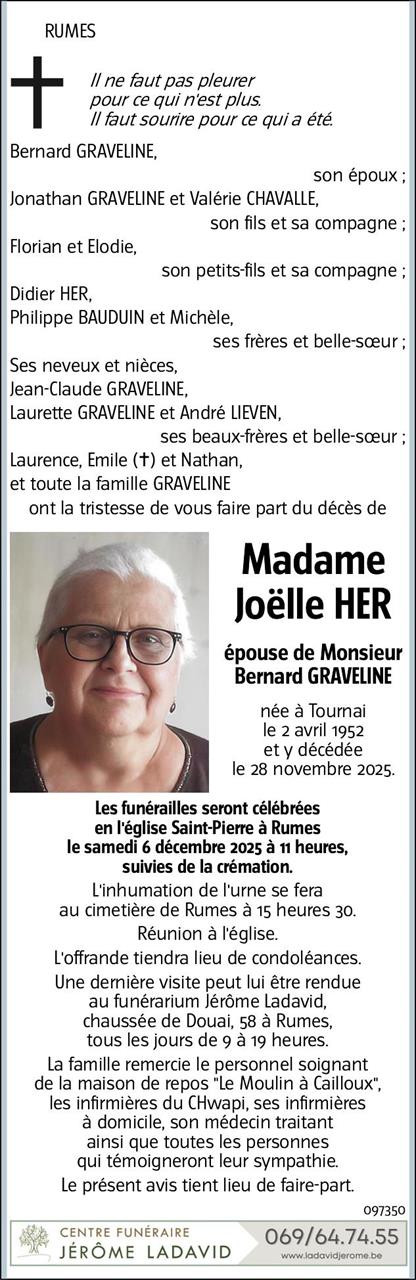 Fallecida en Tournai (7500, Bélgica) el viernes, 28 de noviembre de 2025 a la edad de 73 años