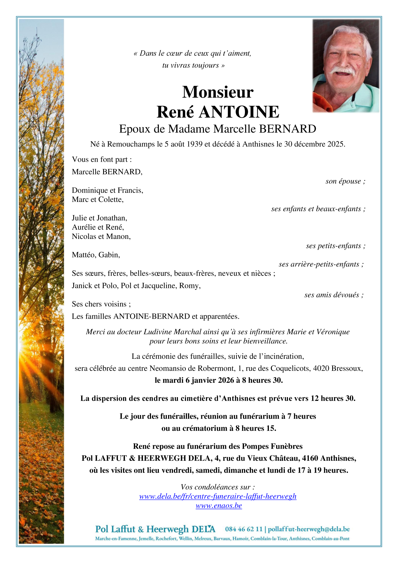 Fallecido en Anthisnes (4160, Bélgica) el martes, 30 de diciembre de 2025 a la edad de 86 años
