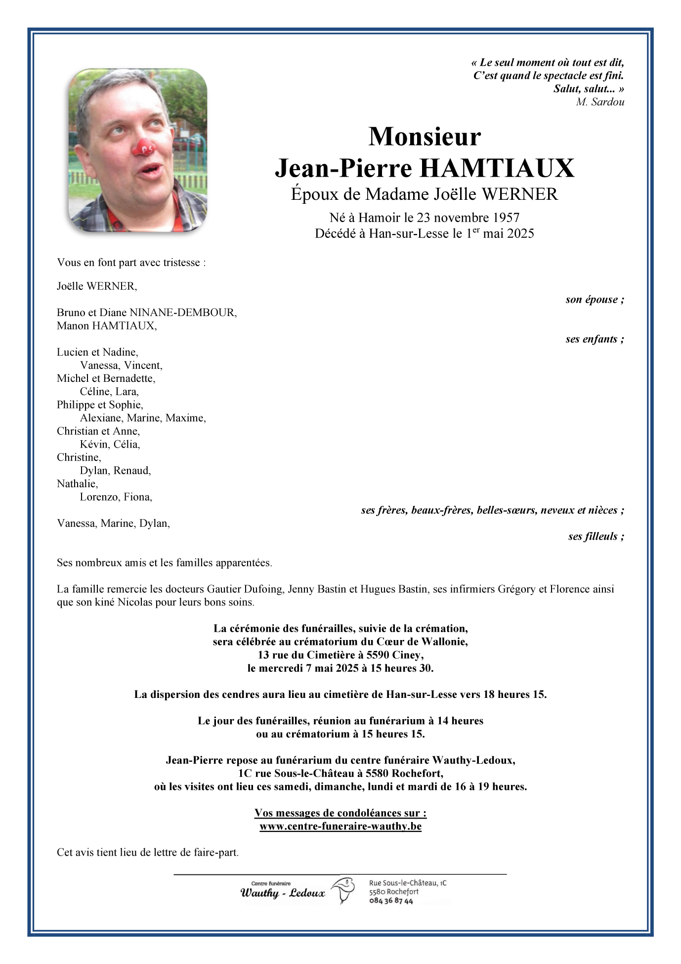 Overleden te Han-sur-Lesse (5580, België) op donderdag 1 mei 2025 op 67-jarige leeftijd