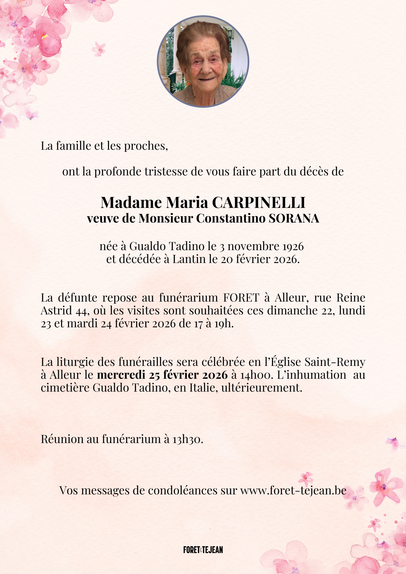 Fallecida en Lantin (4450, Bélgica) el viernes, 20 de febrero de 2026 a la edad de 99 años