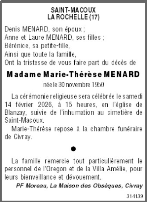 Madame Marie-Thérèze MÉNARD née MAÎTRE