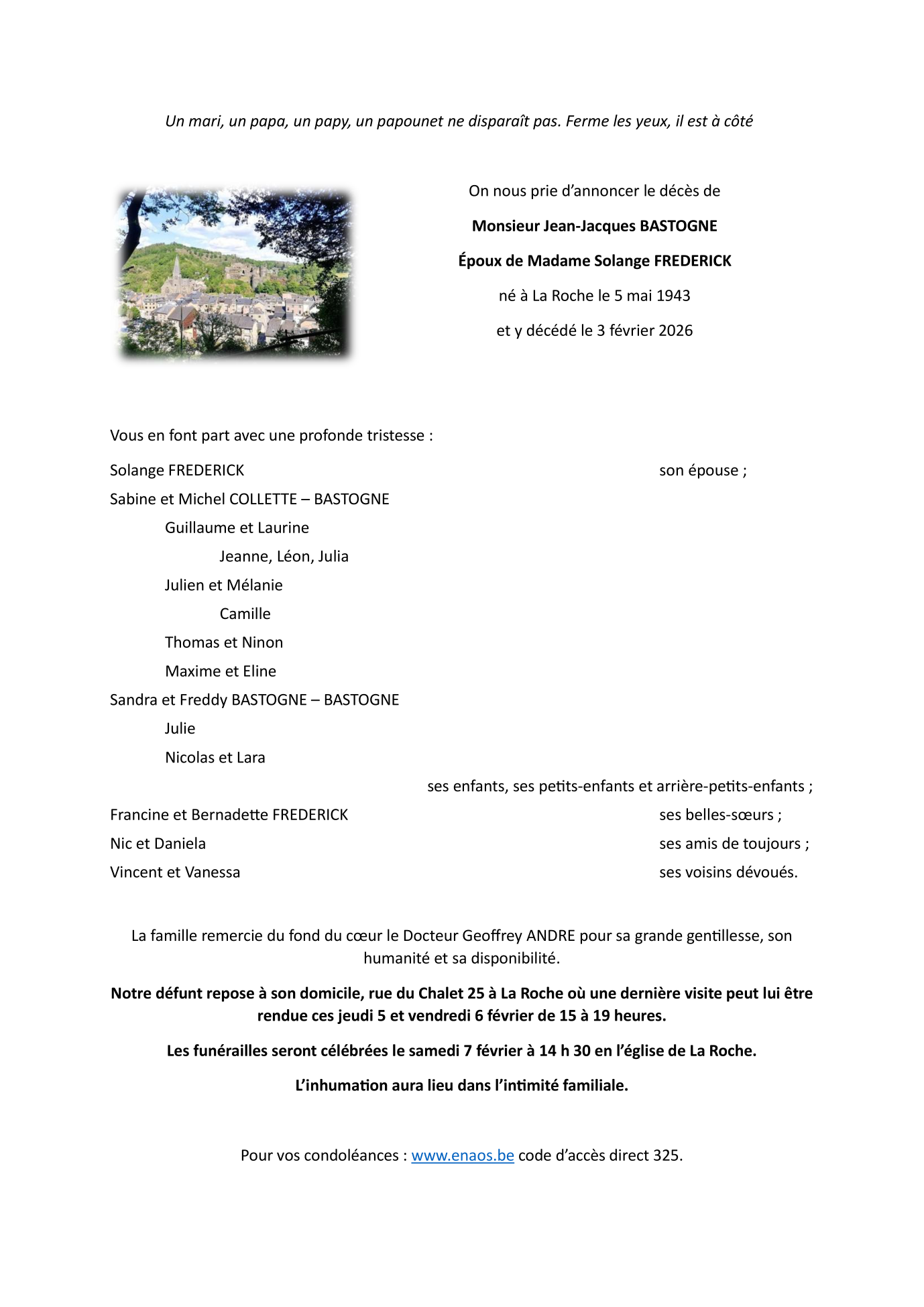 Fallecido en La Roche-en-Ardenne (6980, Bélgica) el martes, 3 de febrero de 2026 a la edad de 82 años