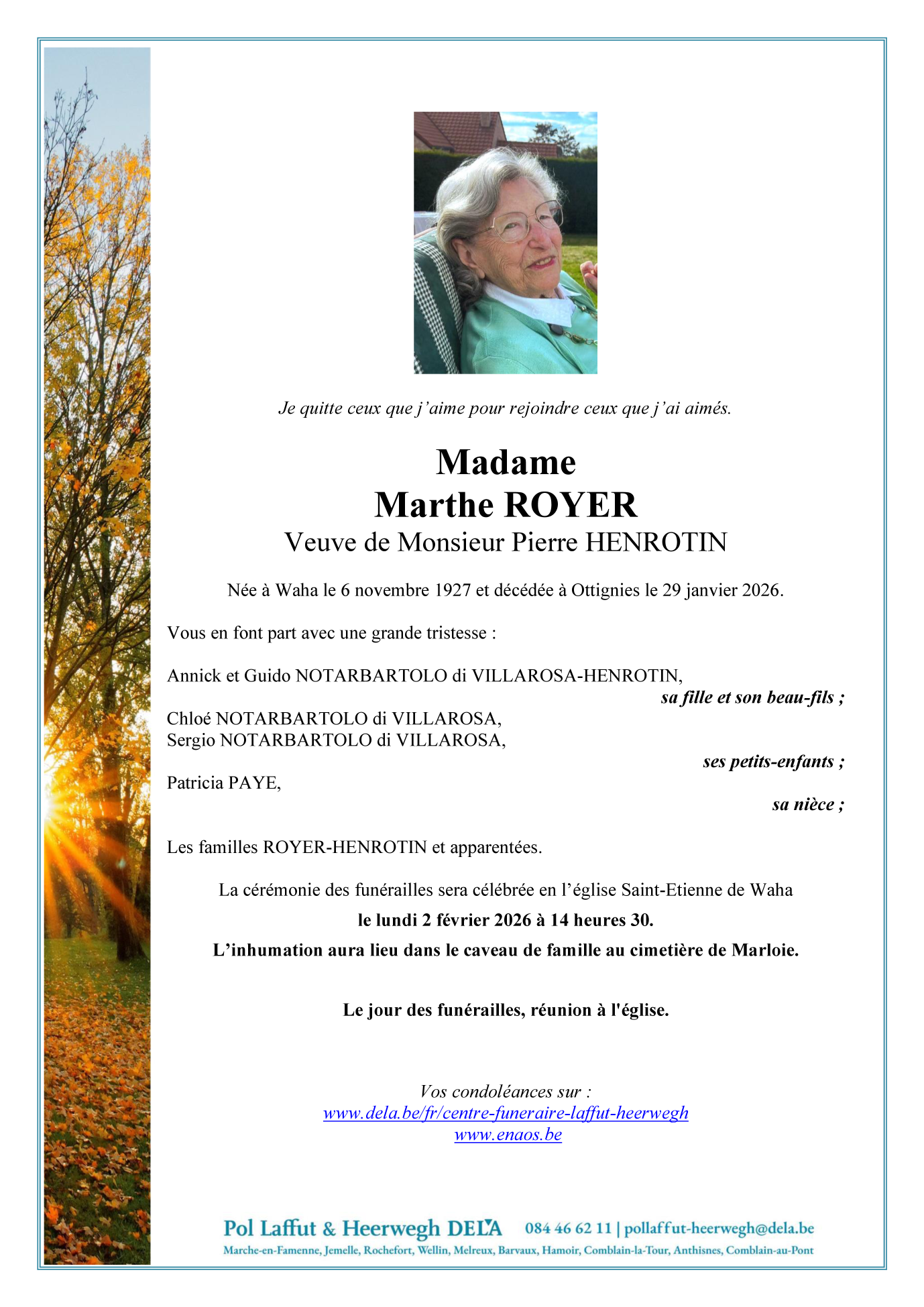 Overleden te Ottignies (1340, België) op donderdag 29 januari 2026 op 98-jarige leeftijd