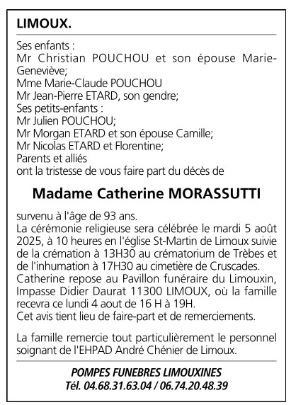 Overleden te Limoux (11300, Frankrijk) op woensdag 30 juli 2025 op 93-jarige leeftijd
