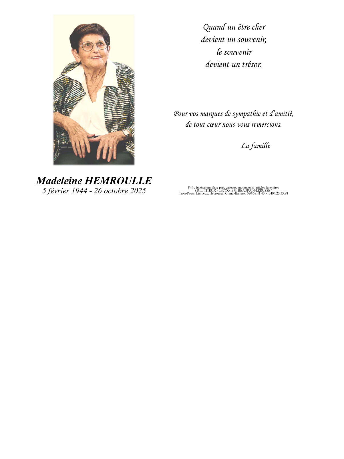 Fallecida en Liège (4000, Bélgica) el domingo, 26 de octubre de 2025 a la edad de 81 años