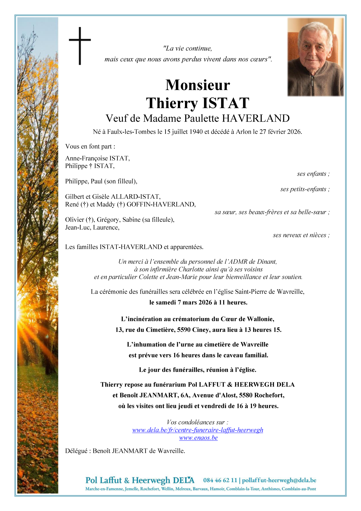 Nacido en Faulx-les-Tombes (5340, Bélgica) el lunes, 15 de julio de 1940