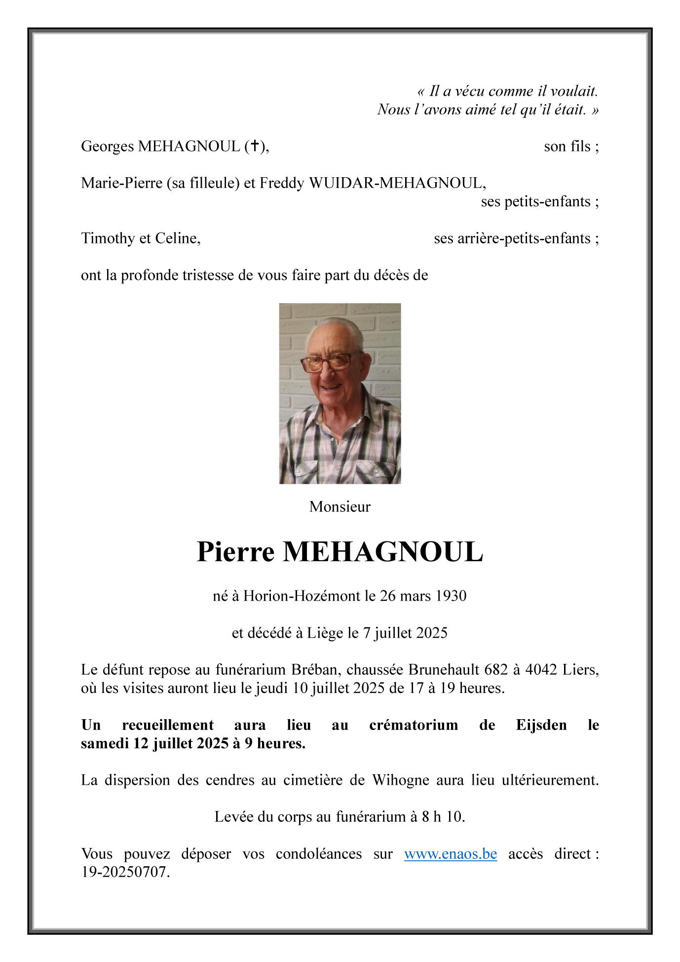 Fallecido en Liège (4020, Bélgica) el lunes, 7 de julio de 2025 a la edad de 95 años
