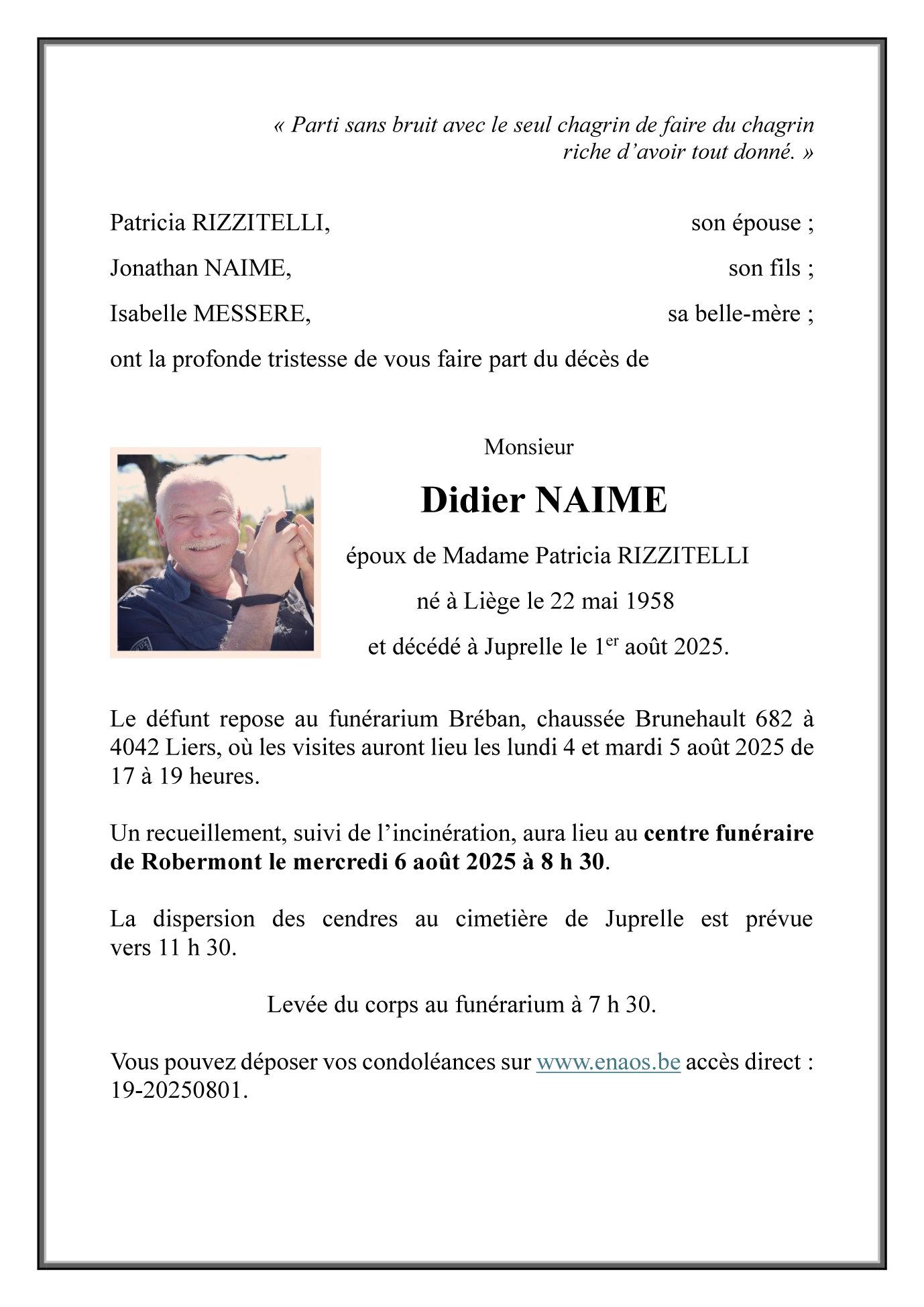 Monsieur Didier NAIME époux de Patricia RIZZITELLI