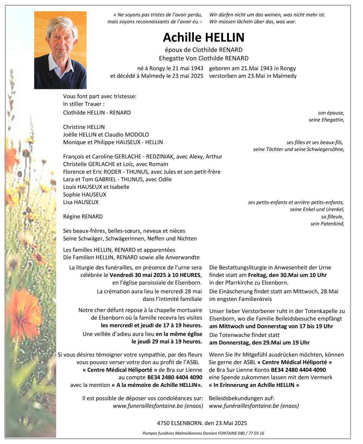 Fallecido en Malmedy (4960, Bélgica) el viernes, 23 de mayo de 2025 a la edad de 82 años