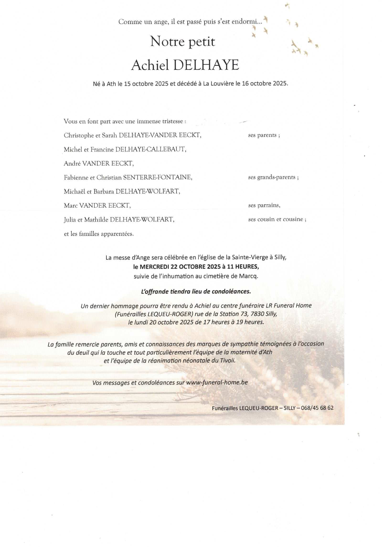 Né à Ath (7800, Belgique) le mercredi 15 octobre 2025