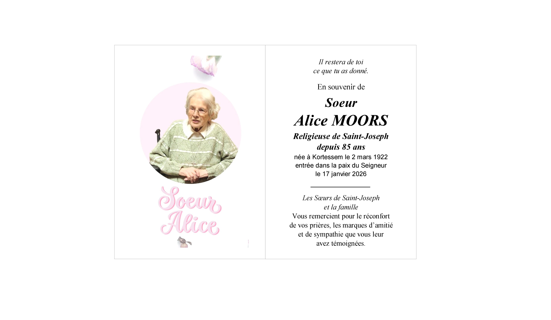 Fallecida en Trois-Ponts (4980, Bélgica) el sábado, 17 de enero de 2026 a la edad de 103 años