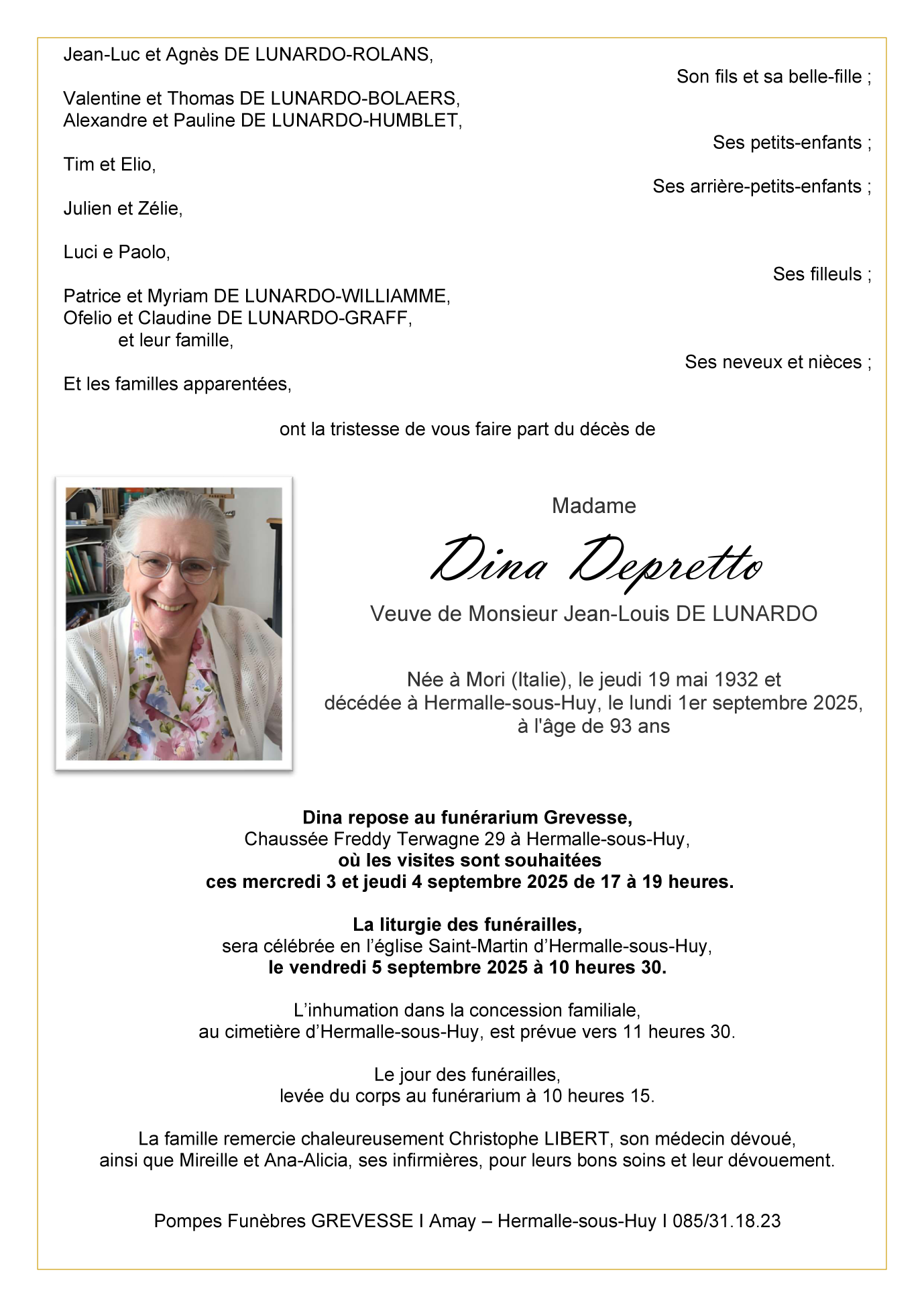 Died in Hermalle-sous-Huy (4480, Belgium) on 01 September 2025 at the age of 93 years