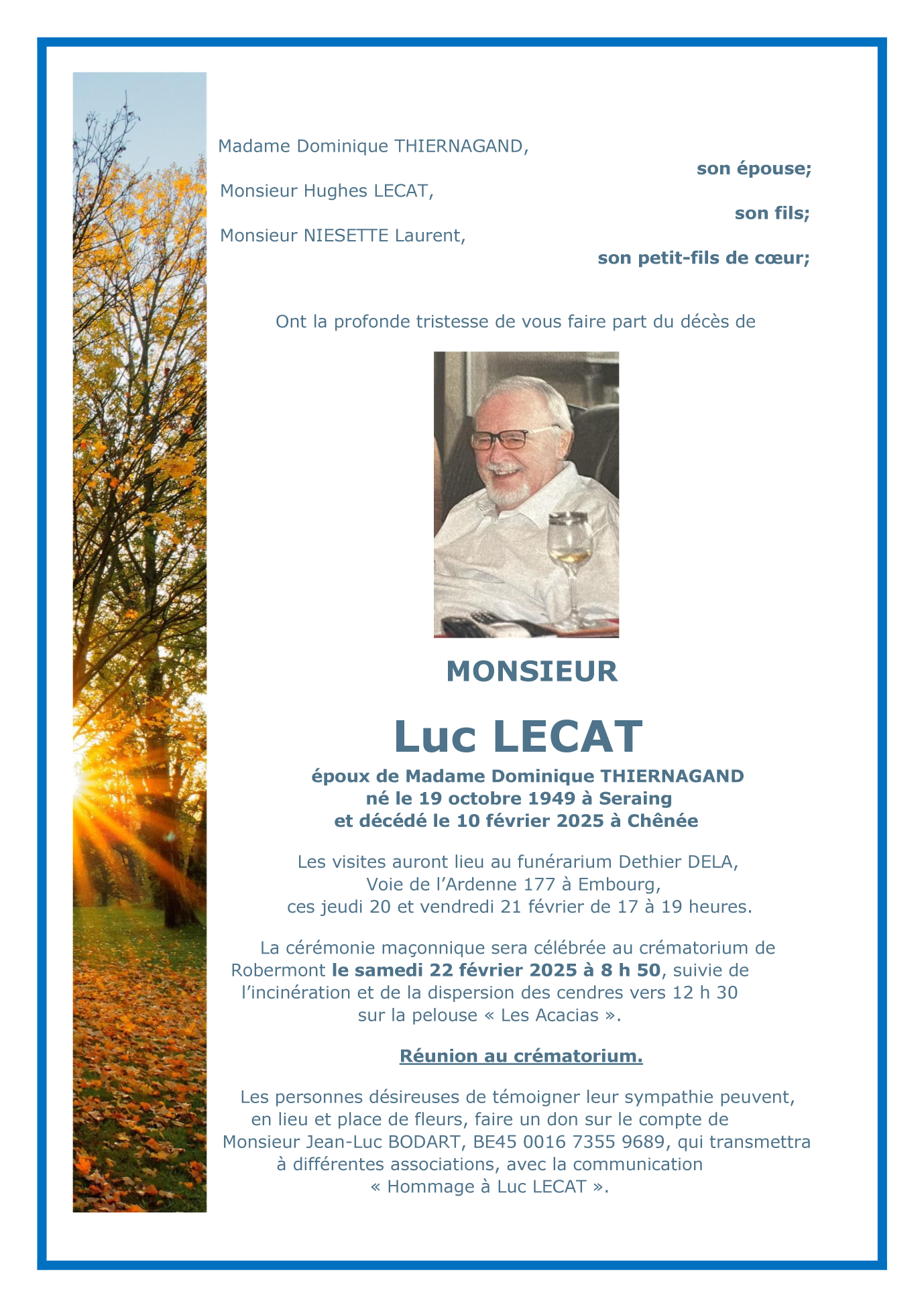 Overleden te Chênée (4032, België) op maandag 10 februari 2025 op 75-jarige leeftijd