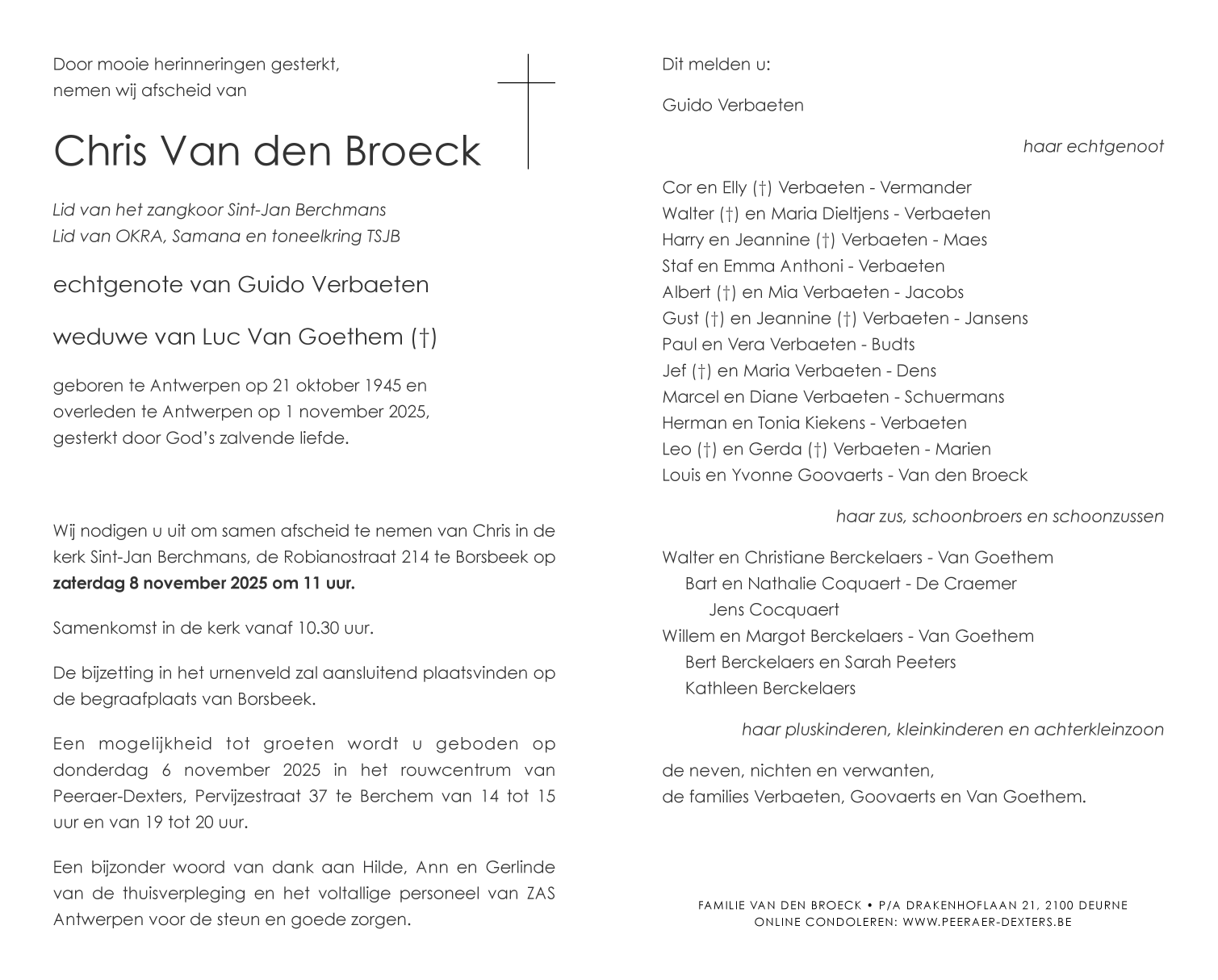 Died in Antwerpen (2020, Belgium) on 01 November 2025 at the age of 80 years