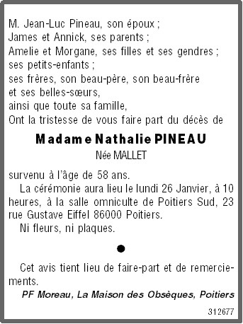 Madame Nathalie PINEAU geboren MALLET