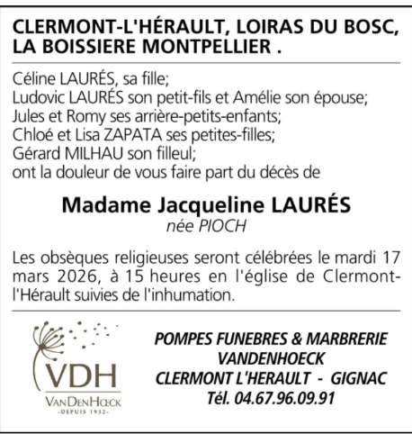 Died in Montpellier (34000, France) on 12 March 2026 at the age of 93 years