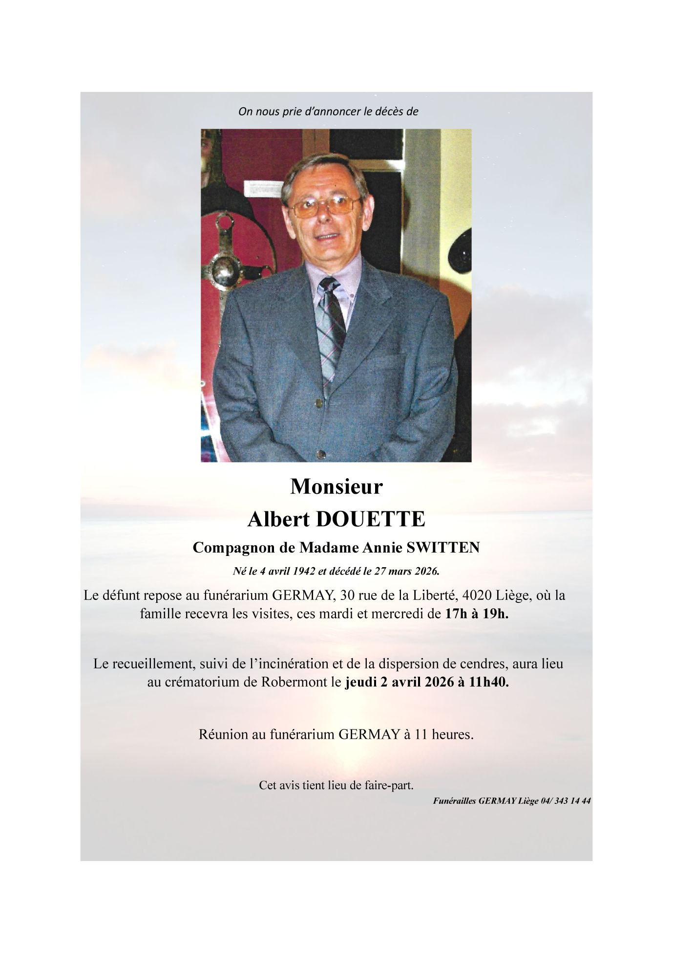 Fallecido en Liège (4000, Bélgica) el viernes, 27 de marzo de 2026 a la edad de 83 años