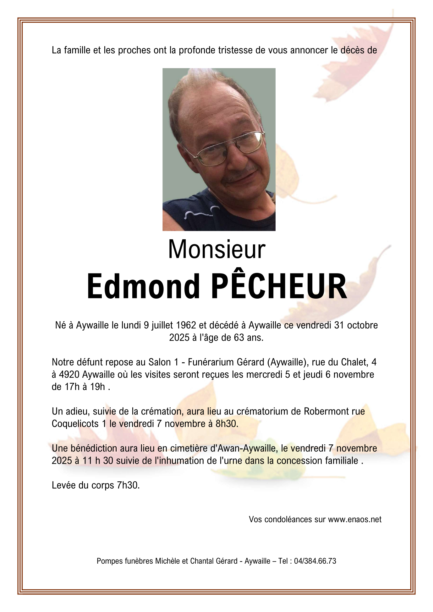 Fallecido en Aywaille (4920, Bélgica) el viernes, 31 de octubre de 2025 a la edad de 63 años