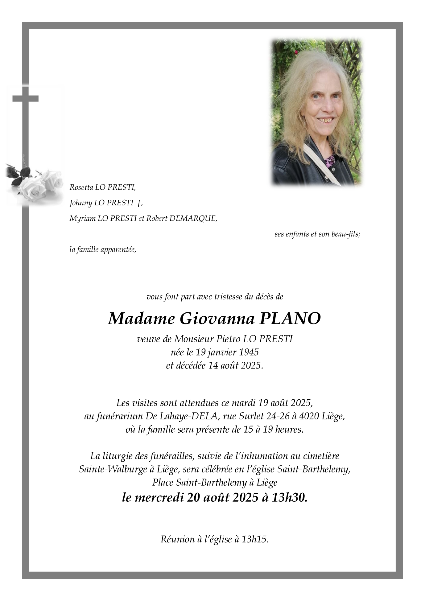 Fallecida en Liège (4000, Bélgica) el jueves, 14 de agosto de 2025 a la edad de 80 años