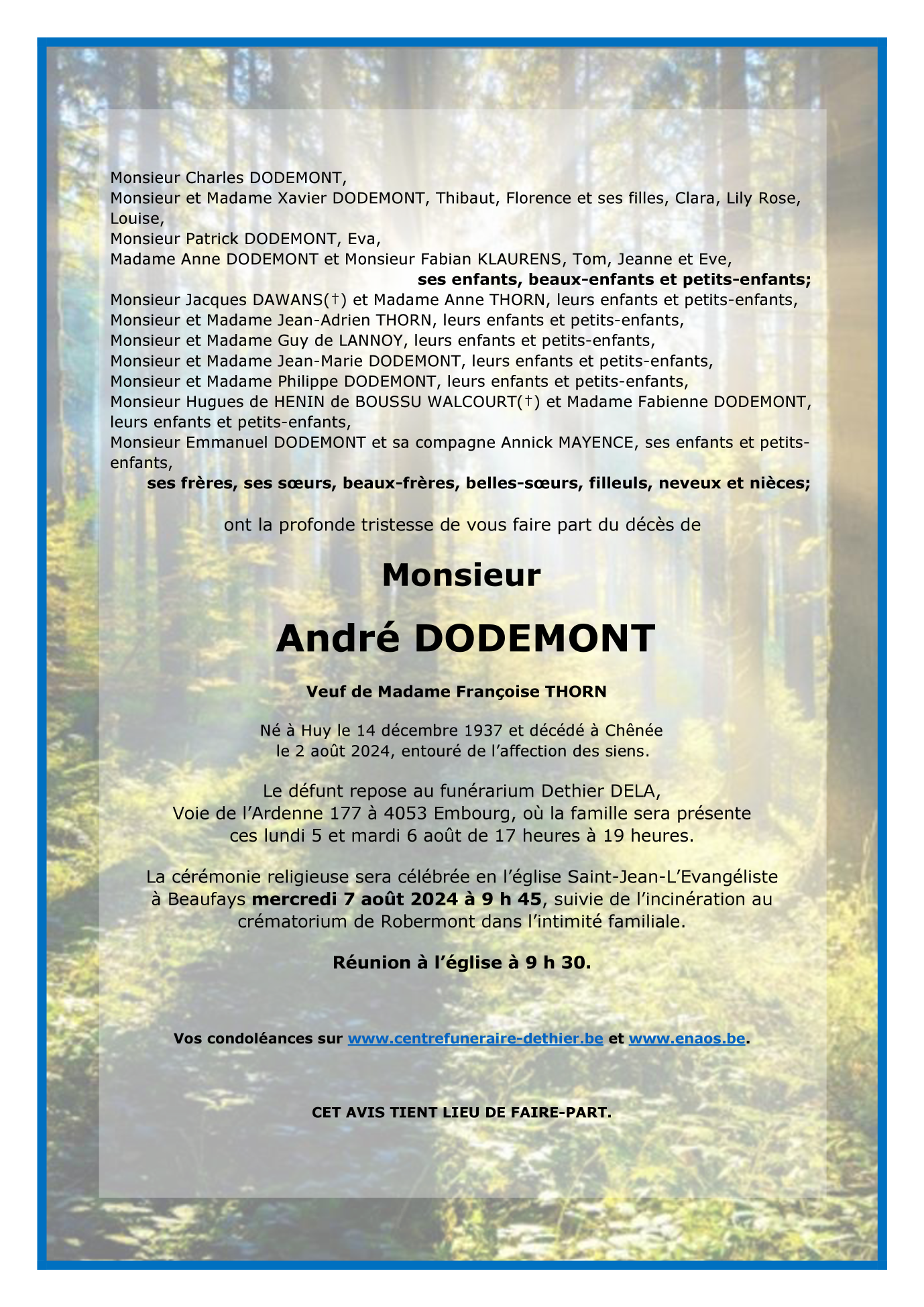 Décédé à Chênée (4032, Belgique) le vendredi 2 août 2024 à l'âge de 86 ans