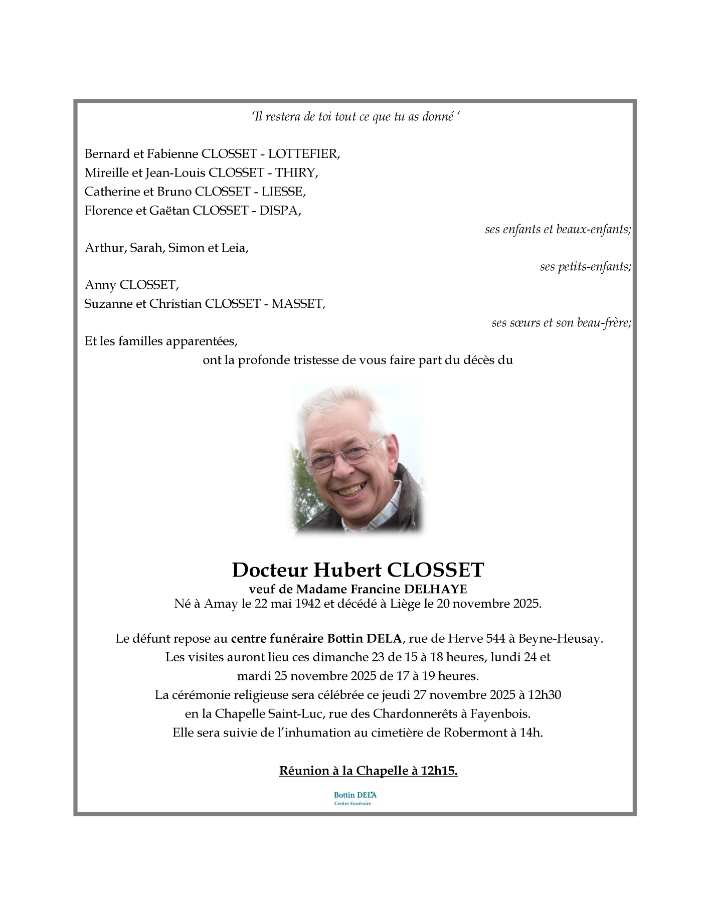 Died in Liège (4000, Belgium) on 20 November 2025 at the age of 83 years