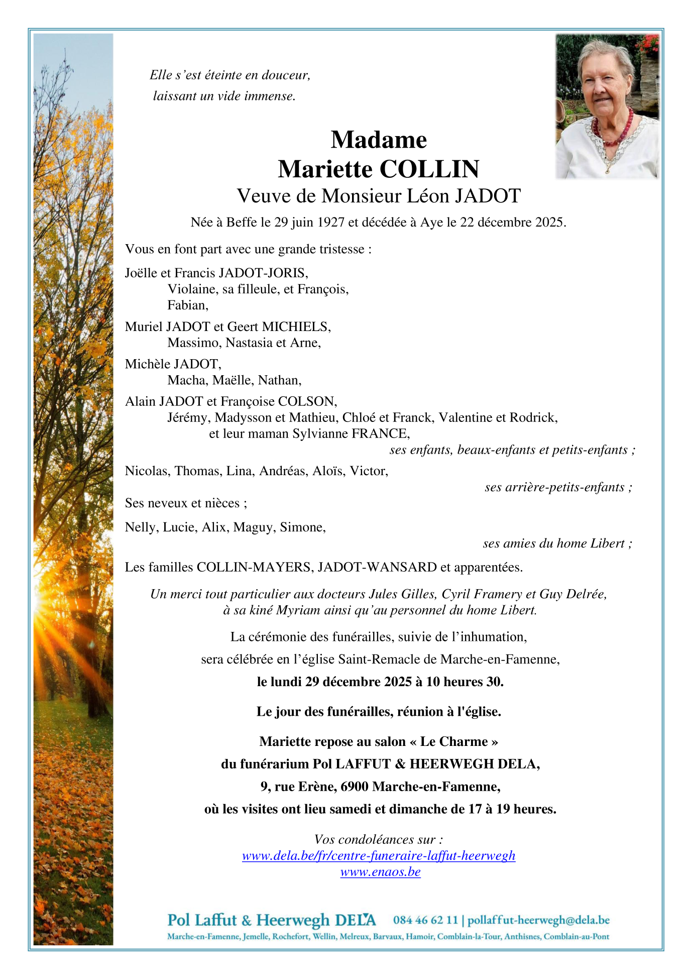 Overleden te Aye (6900, België) op maandag 22 december 2025 op 98-jarige leeftijd