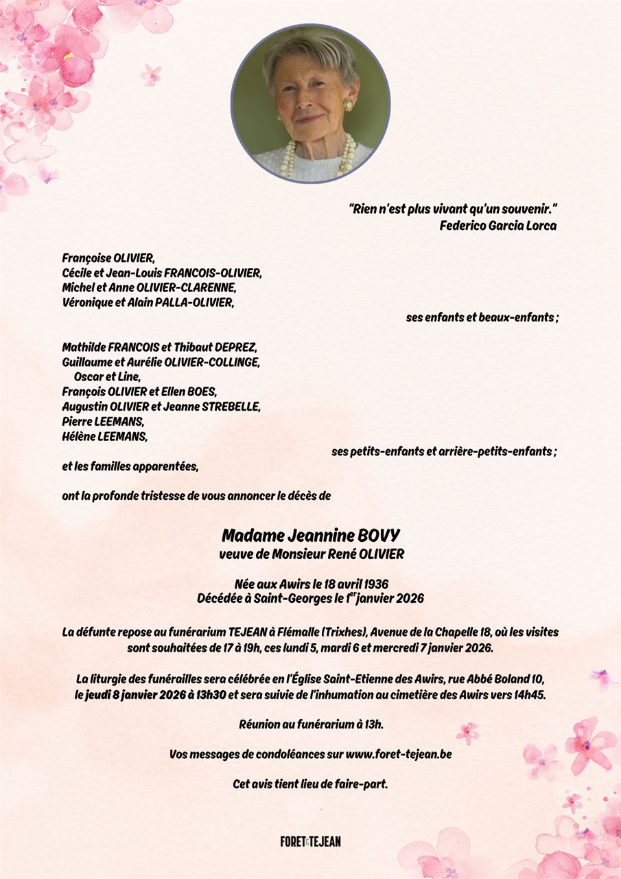 Died in Saint-Georges-sur-Meuse (4470, Belgium) on 01 January 2026 at the age of 89 years
