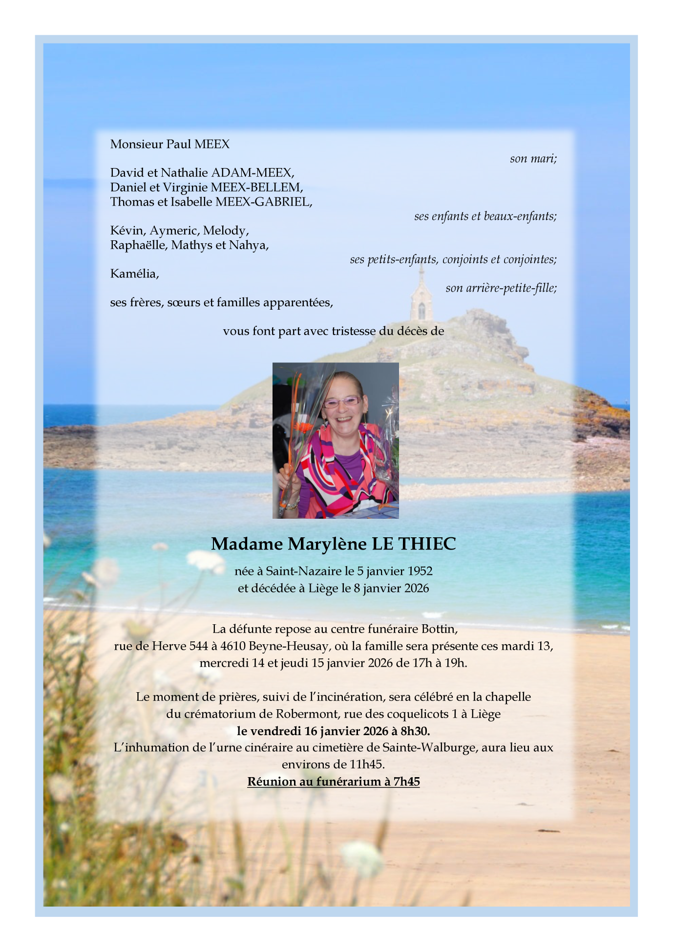 Overleden te Liège (4000, België) op donderdag 8 januari 2026 op 74-jarige leeftijd