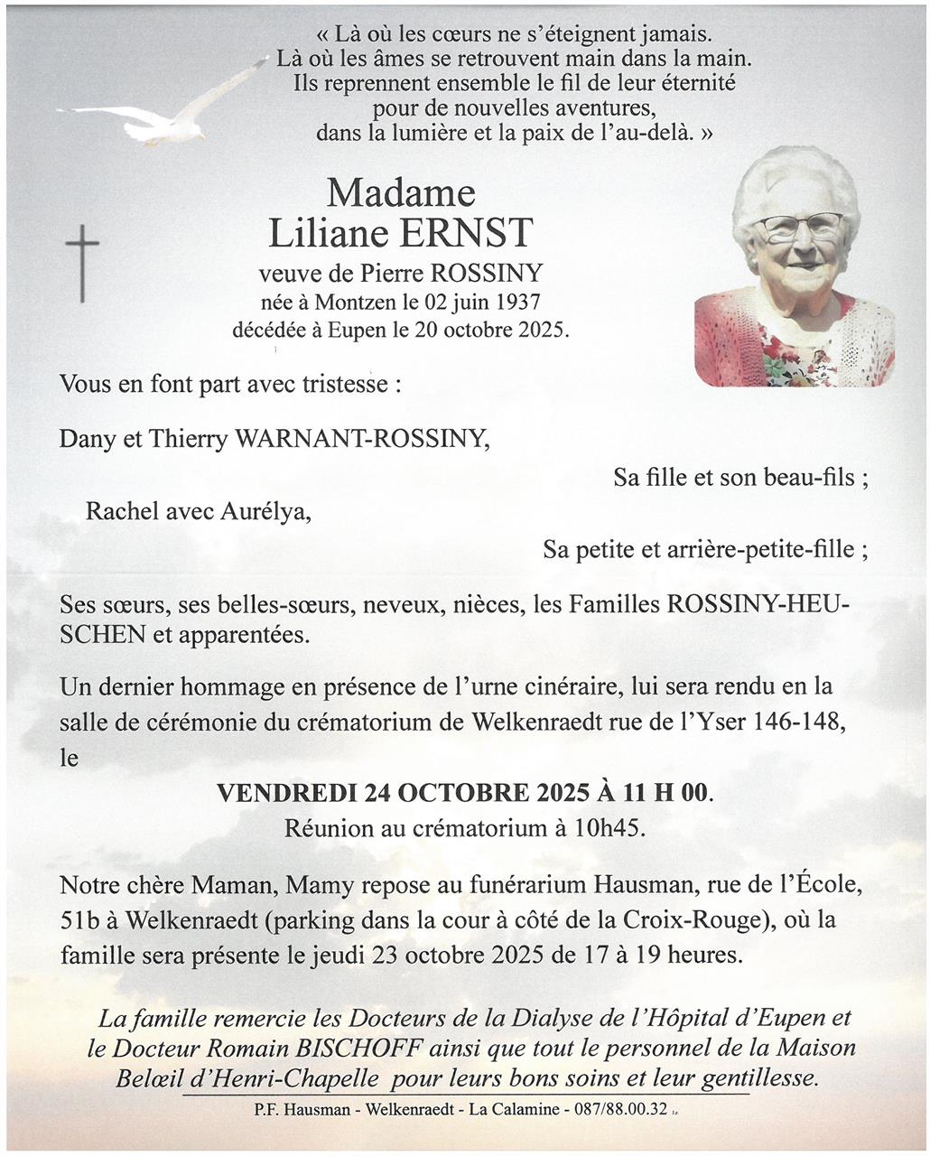 Décédée à Eupen (4700, Belgique) le lundi 20 octobre 2025 à l'âge de 88 ans