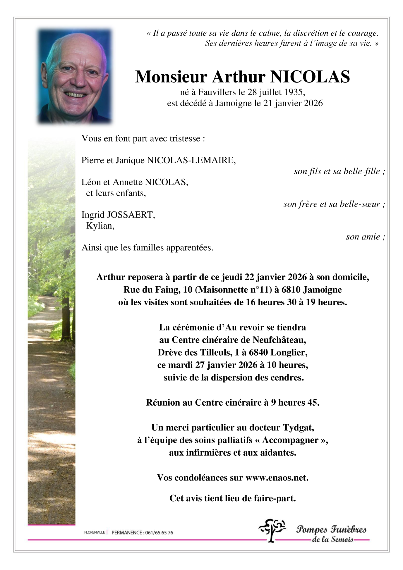 Died in Jamoigne (6810, Belgium) on 21 January 2026 at the age of 90 years