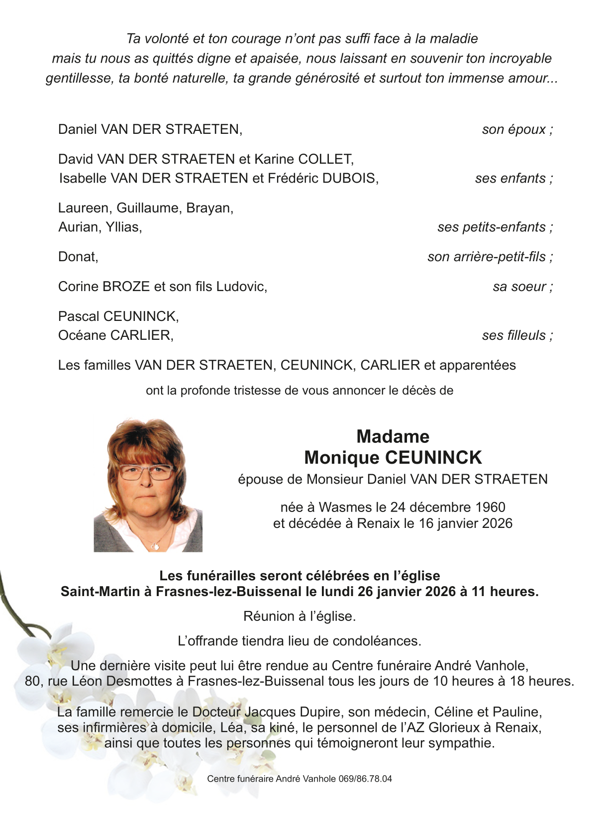 Compagne de Monsieur Daniel VAN DER STRAETEN